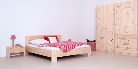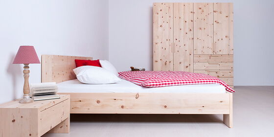 Das Massivholzbett FANES FA38 wird metallfrei gefertigt und weist eine hohe Stabilität auf. Das Bett ist in der Holzart Zirbe und Fichte erhältlich.