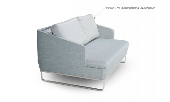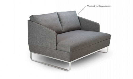 Das Schlafsofa DUETTO-DELUXE (Doppelbett) entlehnt dem DELUXE die filigrane Formensprache, ist aber deutlich kompakter. Ein elegantes, rundum gestaltetes Sofa, dass sich auch in der Mitte eines Raumes wohlfühlt. Zur Auswahl stehen drei verschiedene Kissen-Ausführungen.
